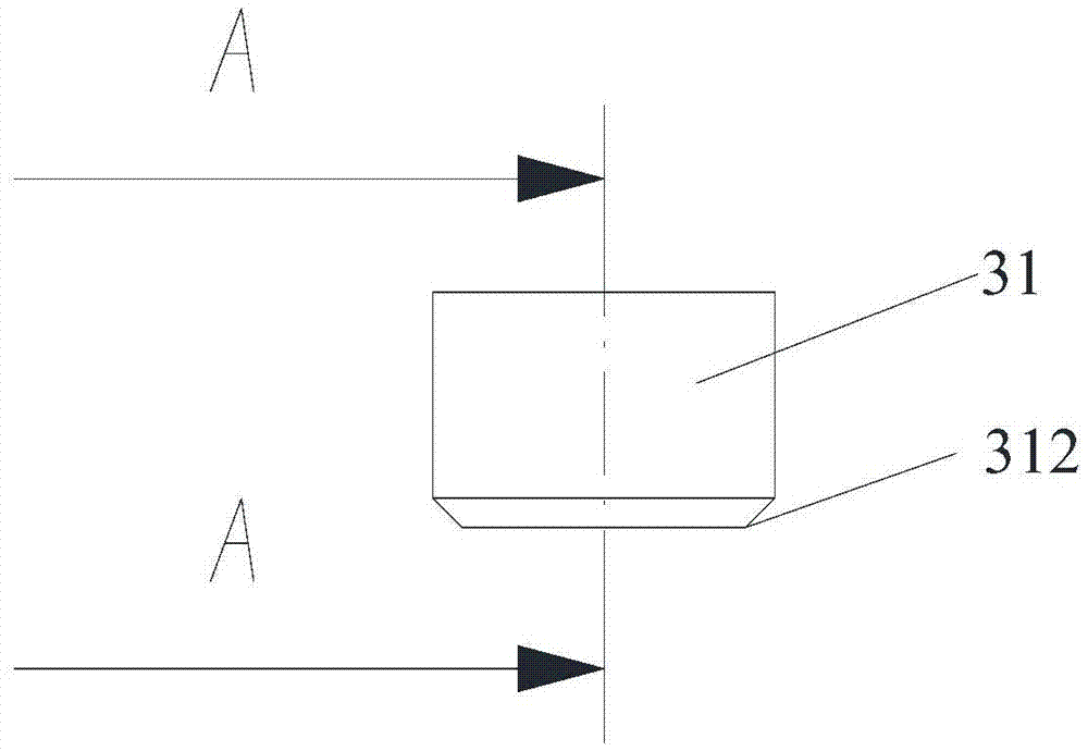 6.根據(jù)權(quán)利要求5所述的緊固件加工裝置,其特征在于,所述切割主體(31)上設(shè)置有用于所述導(dǎo)向部(32)穿設(shè)且與所述導(dǎo)向部(32)相適配的導(dǎo)向孔(311)。