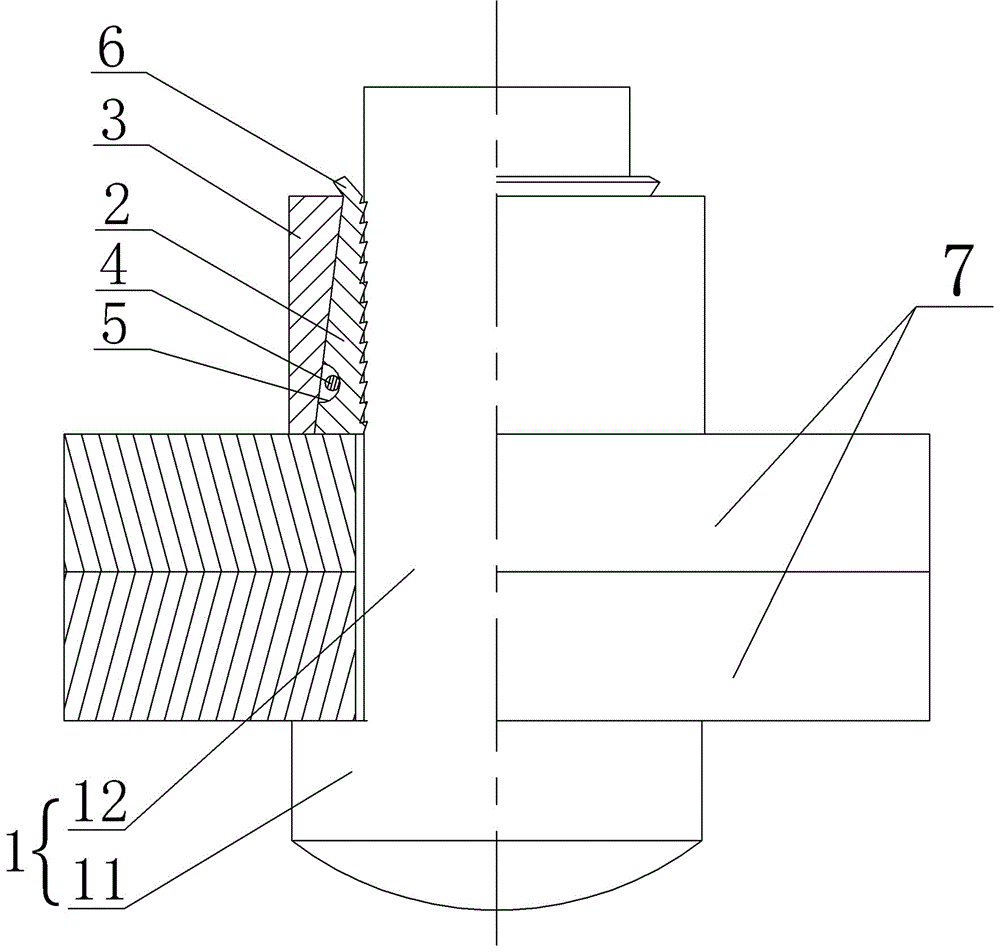 綜上所述,本發(fā)明設(shè)計(jì)巧妙,易于使用,防松效果好,避免了螺栓螺母生產(chǎn)中螺紋和螺母的加工,節(jié)省了原材料,減少了加工過(guò)程中的環(huán)境污染,適用于所有需要緊固的連接件。
